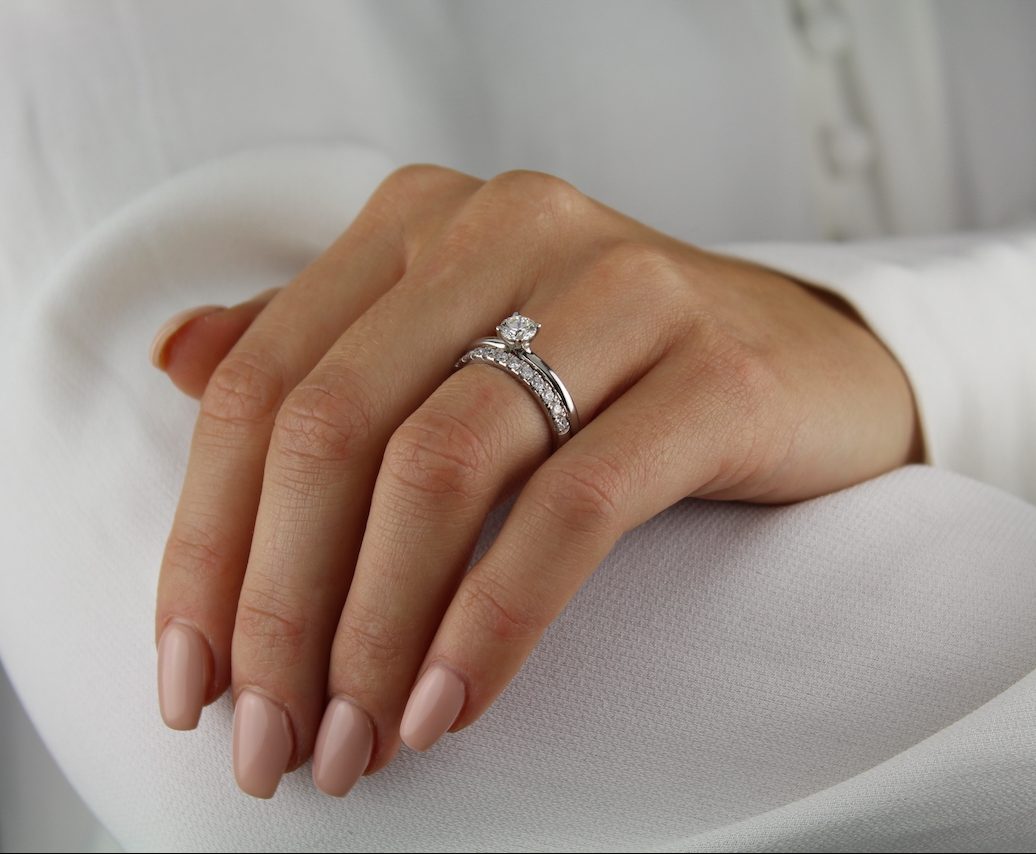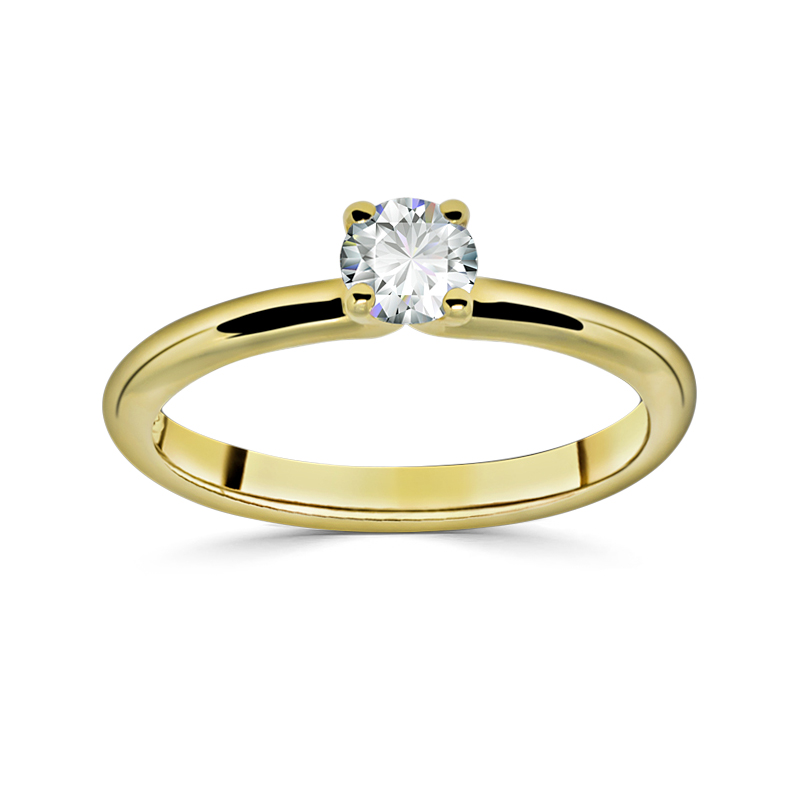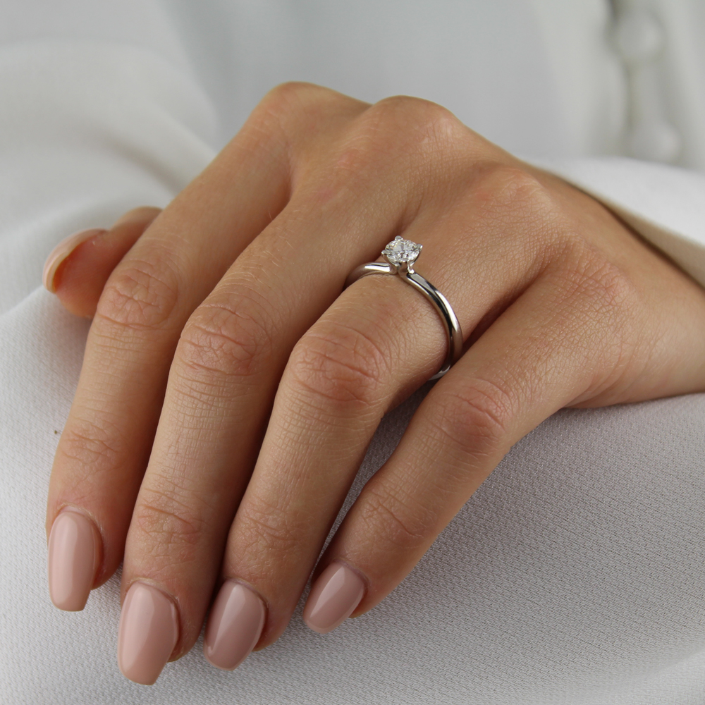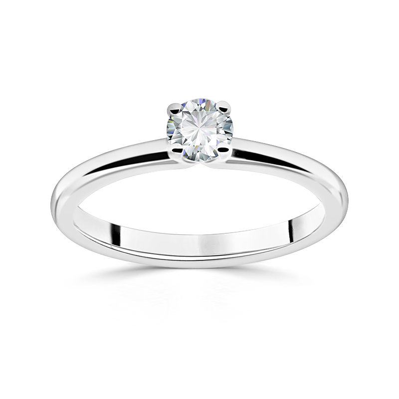 Ringen har en medelhög fattning med fyra nätta klor som omsluter briljanten och låter maximalt med ljus reflekteras i stenen.