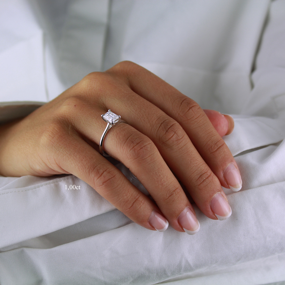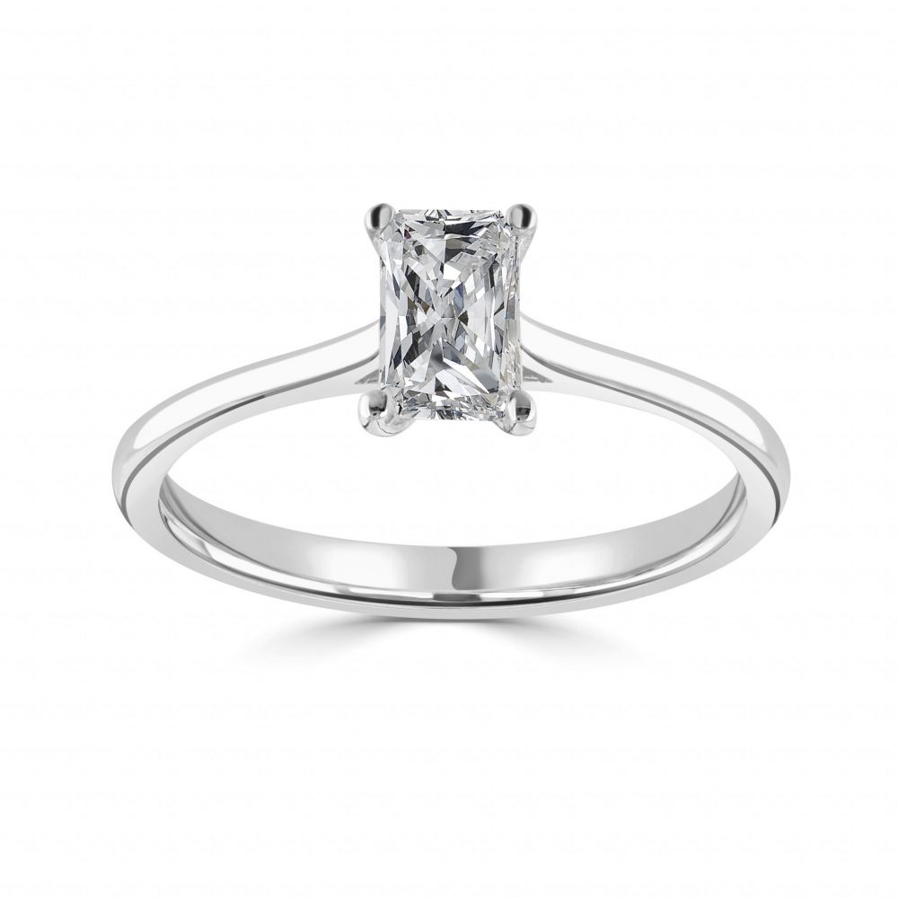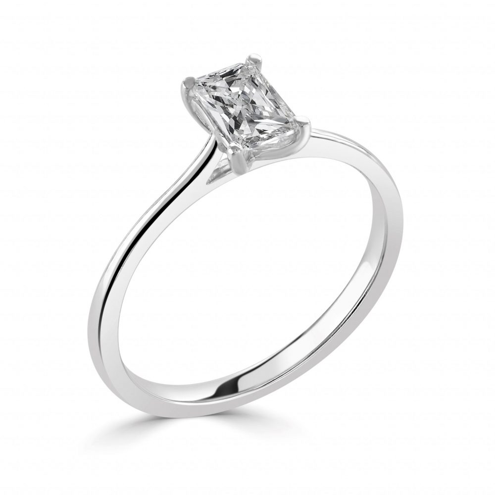 En vacker ring med något vriden skena. Ringen är anpassad till en Radiant slipad sten.