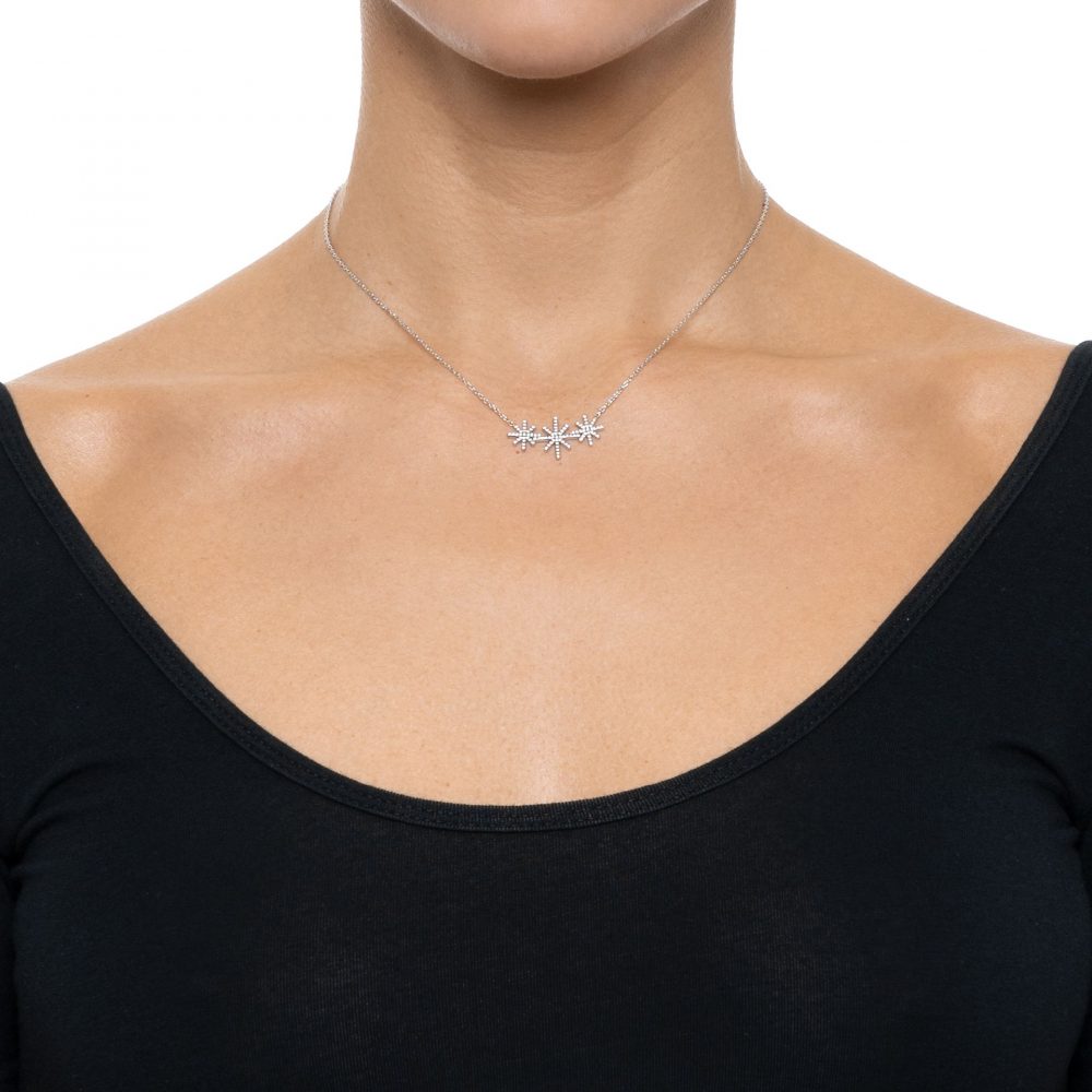 Halsband i rodierat sterling silver med tre stjärnor med briljantslipade diamanter