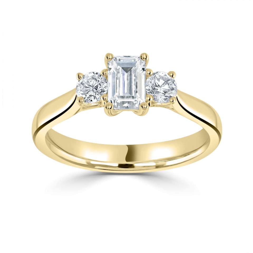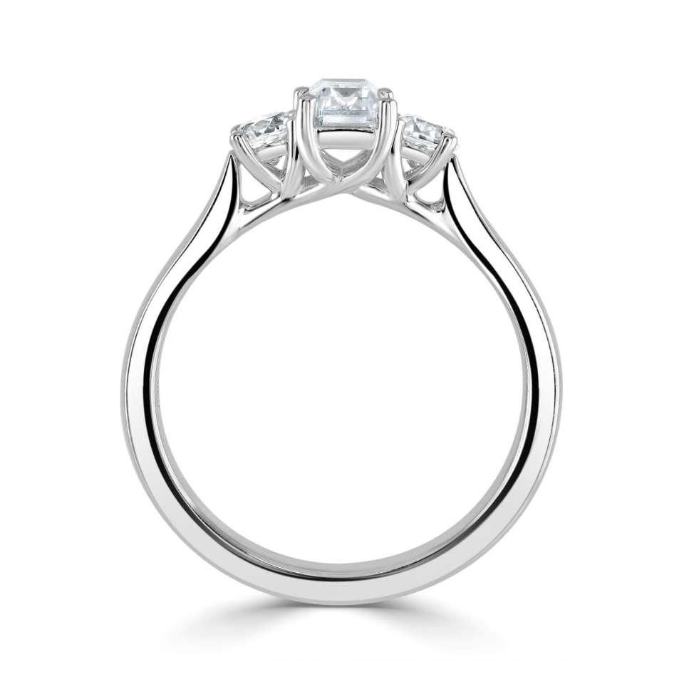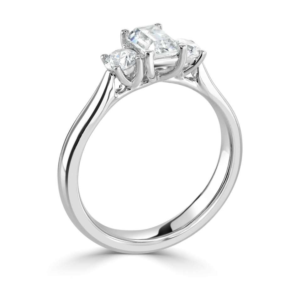 Underbar trestensring med två briljanter och en smaragdslipad diamant.