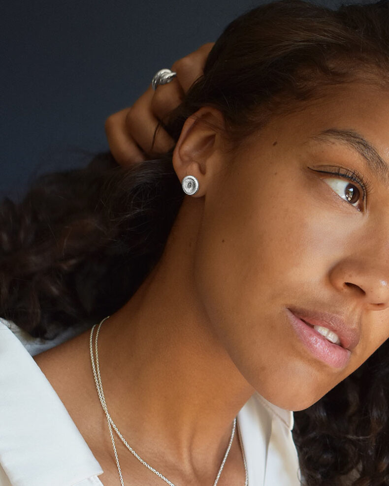 Ett par stora runda silverörhängen på stift. Det perfekta vardagssmycket med en design inspirerat från skandinaviska naturen.