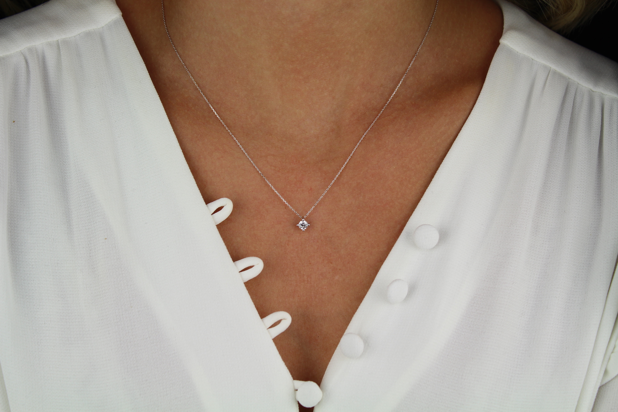 Ett nätt vitguldshalsband med en briljant på 0,40ct som löper fritt i kedjan.