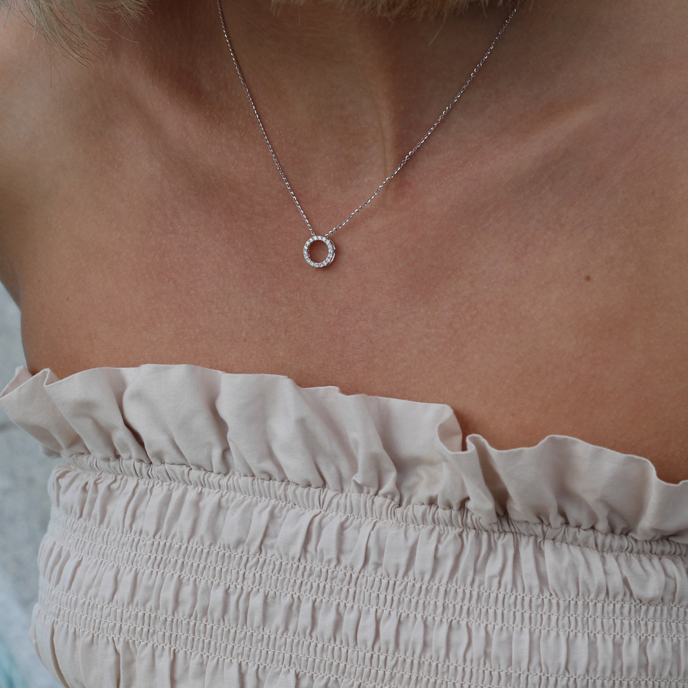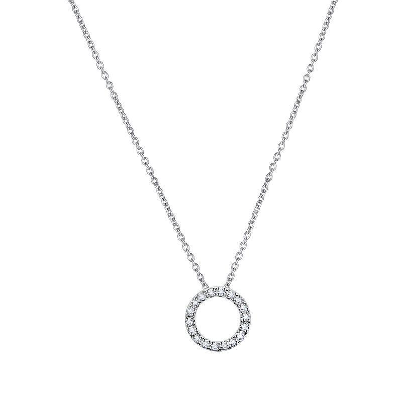 Ett elegant och tidlöst halsband i vitguld med en öppen cirkel fattad med vackra briljanter.