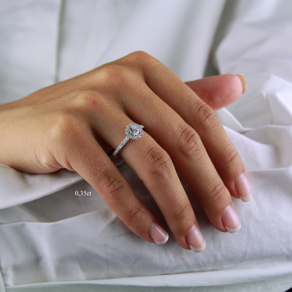 | 0,35ct mittsten | Halo/sidostenar 0,33ct naturliga diamanter |