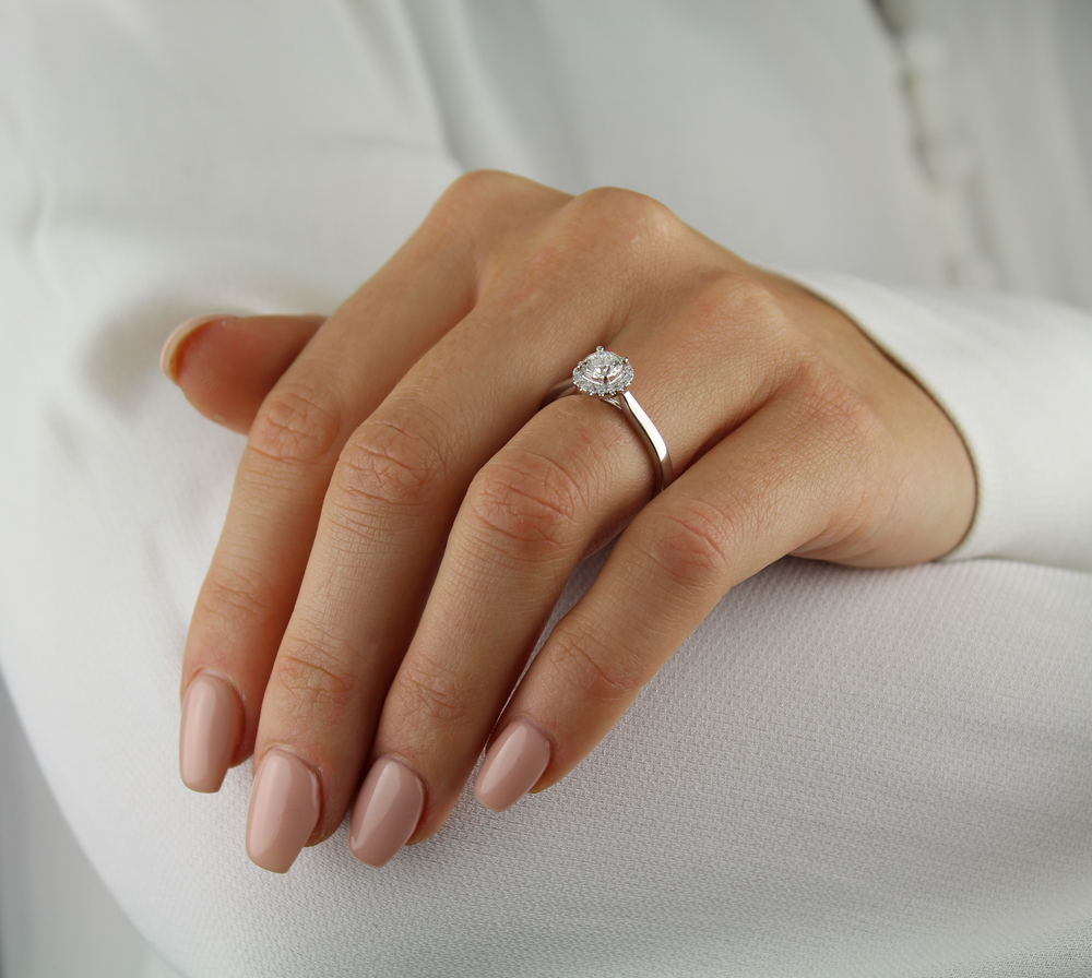 Grace är en otroligt vacker haloring som glittrar lite extra tack vare sin design. En haloring innebär att centerdiamanten är omgiven av mindre diamanter i en cirkel vilket bildar en halo. Genom att välja en ring med en halomodell ger det en illusion av att centerdiamanten är större än vad den faktiskt är.
