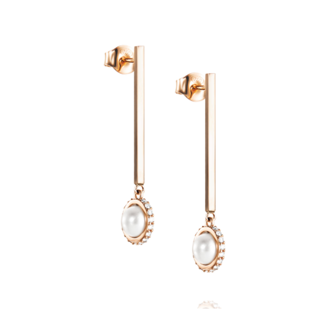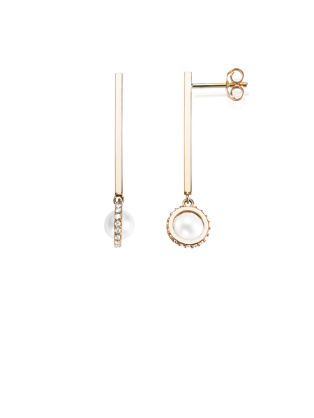 Örhängen på stav i 18k guld med sötvattenpärla och briljantslipade diamanter.
