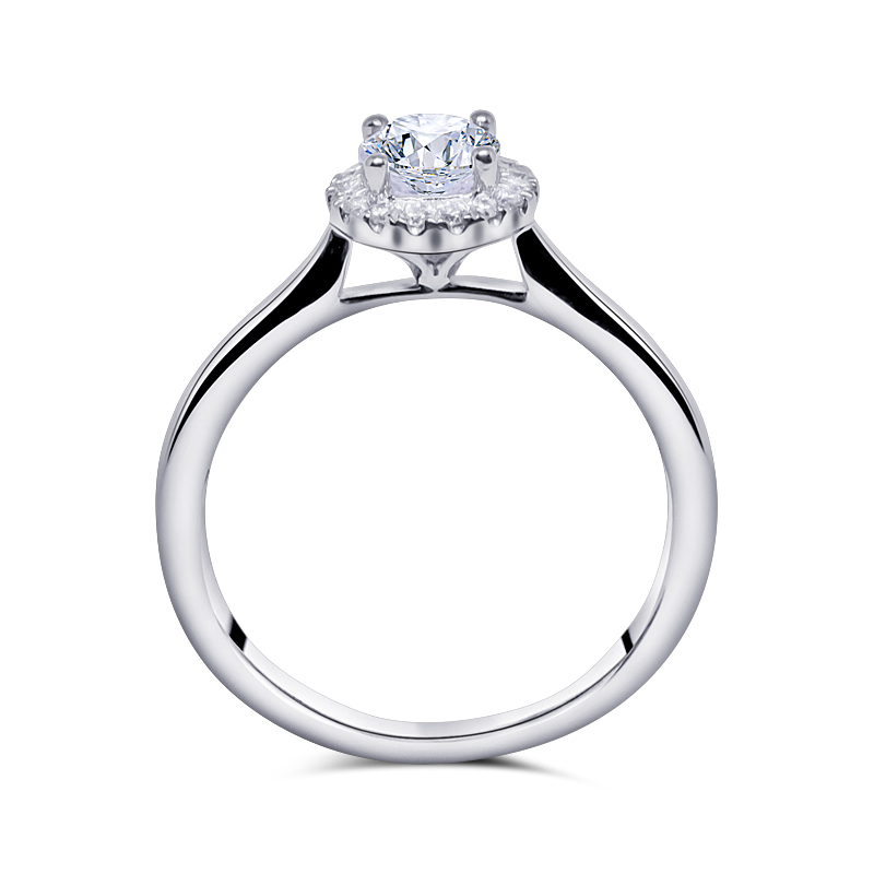 Grace är en otroligt vacker haloring som glittrar lite extra tack vare sin design. En haloring innebär att centerdiamanten är omgiven av mindre diamanter i en cirkel vilket bildar en halo. Genom att välja en ring med en halomodell ger det en illusion av att centerdiamanten är större än vad den faktiskt är.