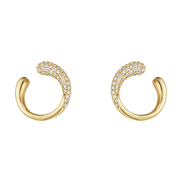 Små trådar av gult guld ringlar sig runt örsnibbarna och formar dessa vackra örhängen. De sinnliga och organiska formerna framhävs av pavéinfattade diamanter som fångar ljuset på ett lågmält och elegant sätt.