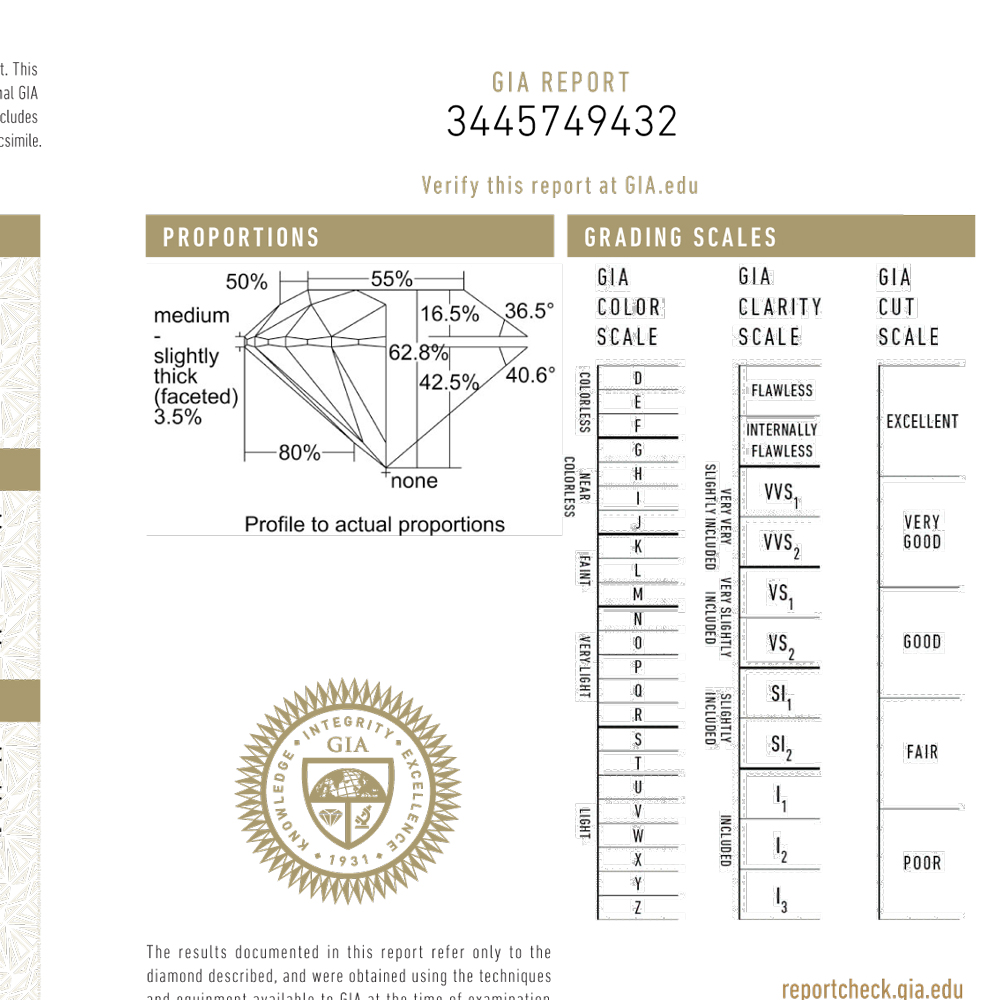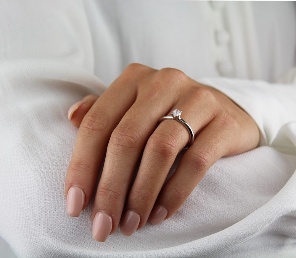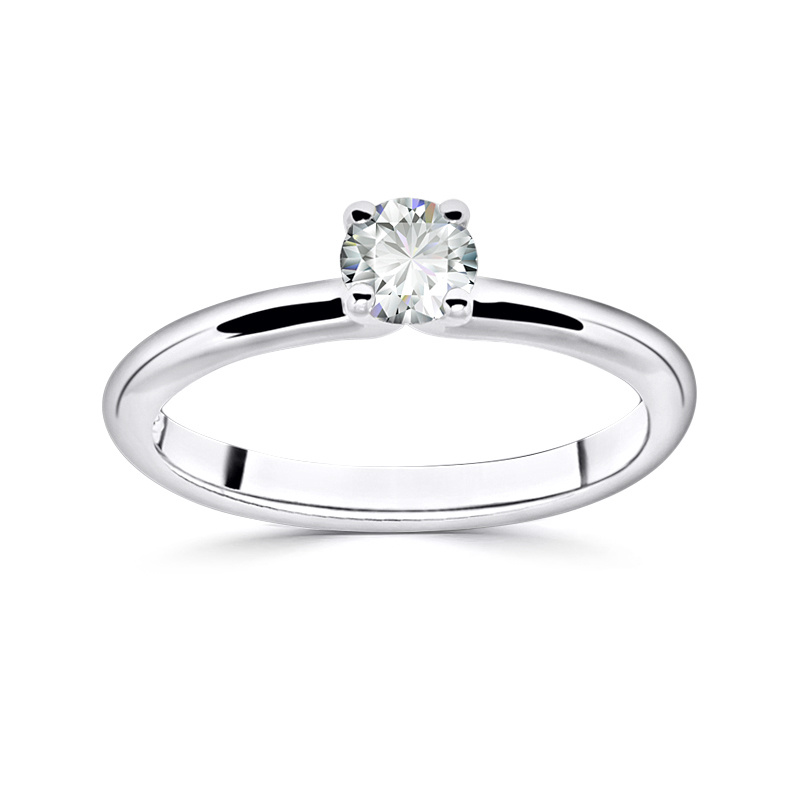 Ringen har en medelhög fattning med fyra nätta klor som omsluter briljanten och låter maximalt med ljus reflekteras i stenen.