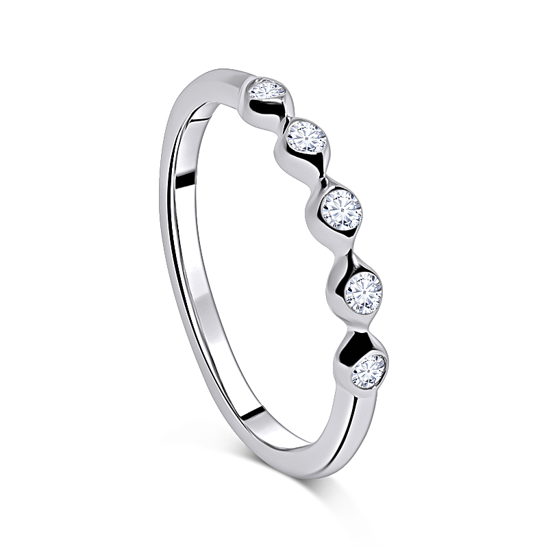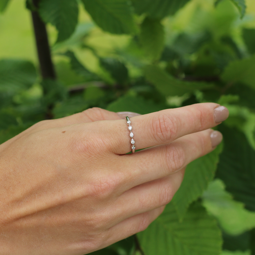 Vacker nätt ring med 5 runda briljanter infattade i ovalformad fattning.