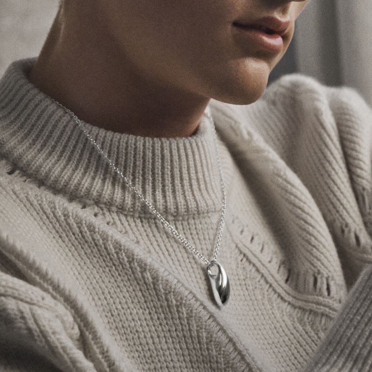 Hängsmycket har Reflect-kollektionens droppformade design och ger varje look ett distinkt men enkelt uttryck. Smycket är tillverkat i sterlingsilver och kan enkelt justeras på längden.