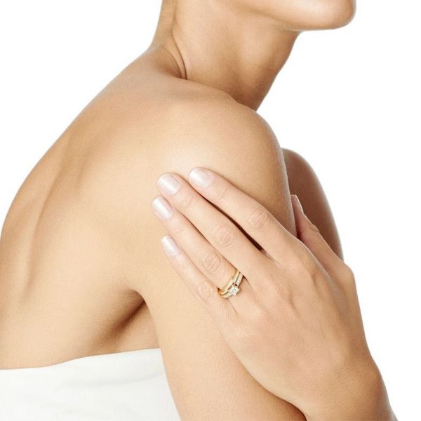 Sidostensring i återvunnet 18k guld eller vitt guld med prinsesslipade diamanter som passar fint ihop med Deco Thin Ring som ett brudset. Ett GIA certifikat medföljer ringen. Denna ring går även att välja med större centersten. Kontakta oss för information och prisförfrågan.