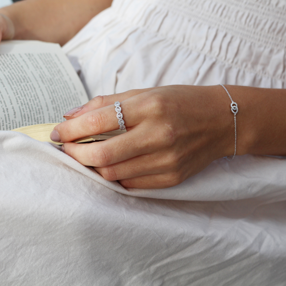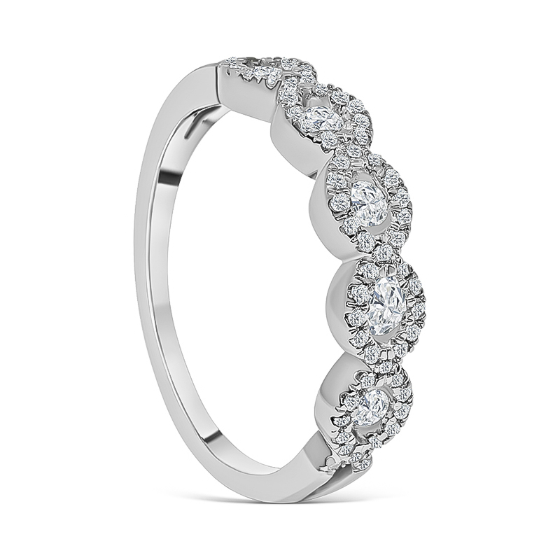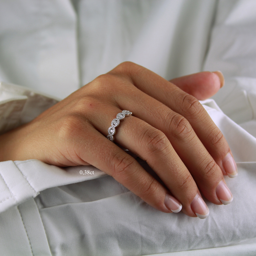 En underbar halvallians med fem lite större briljanter som omsluts att små gnistrande briljanter. Lika vacker ensam som i kombination med andra ringar.