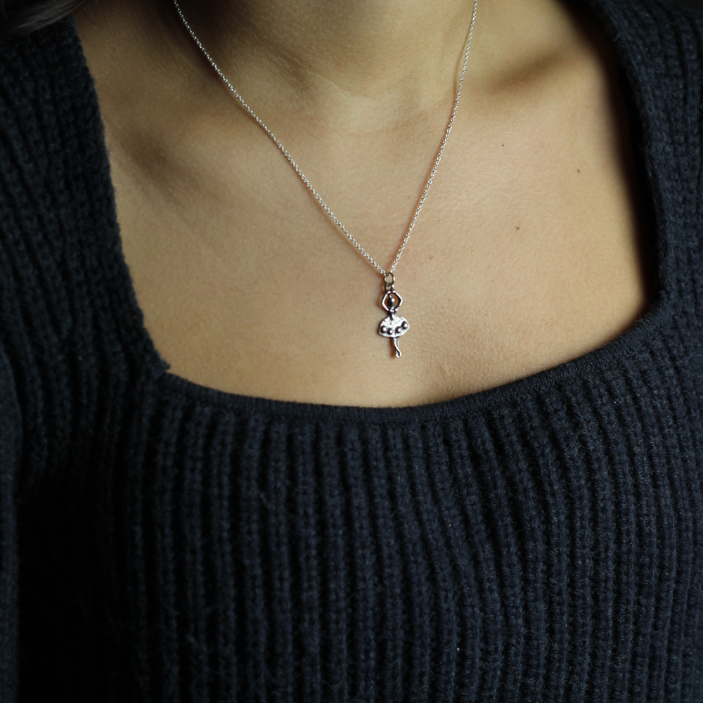 Halsband med dansande kvinna i äkta silver. Kedja ingår.