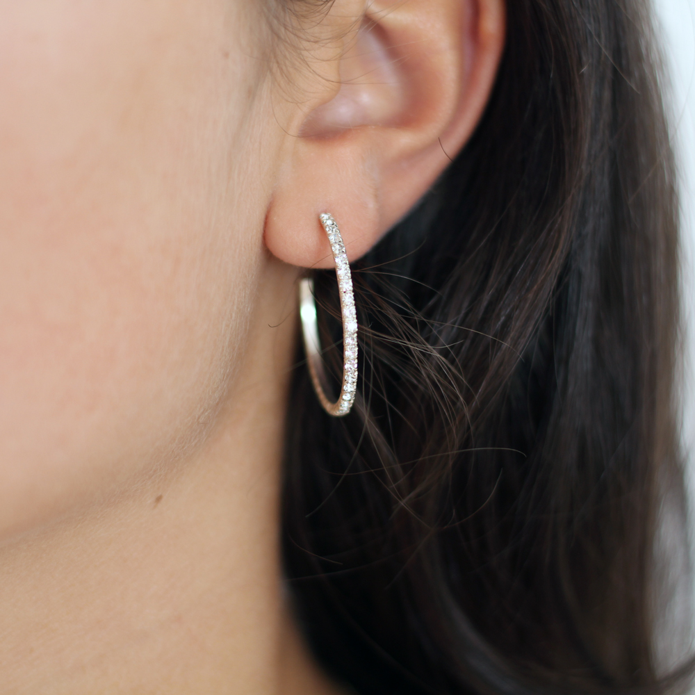 Örhängen i äkta silver med vita cubic zirkonia-stenar.