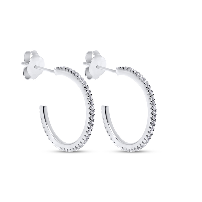 Klassiskt nätta och glittrande hoops i 925 sterlingsilver som är belagda med rhodium för att skydda mot att silvret oxiderar, och ger samtidigt den där lite lyxiga känslan.