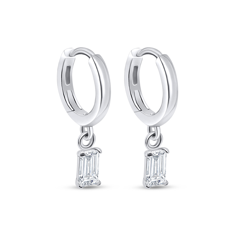 Hoops i silver med två glittrande smaragdslipade cubic zirkonia. Hoopsen är belagda med rhodium för att skydda mot att silvret oxiderar, och ger samtidigt den där lite lyxiga känslan.