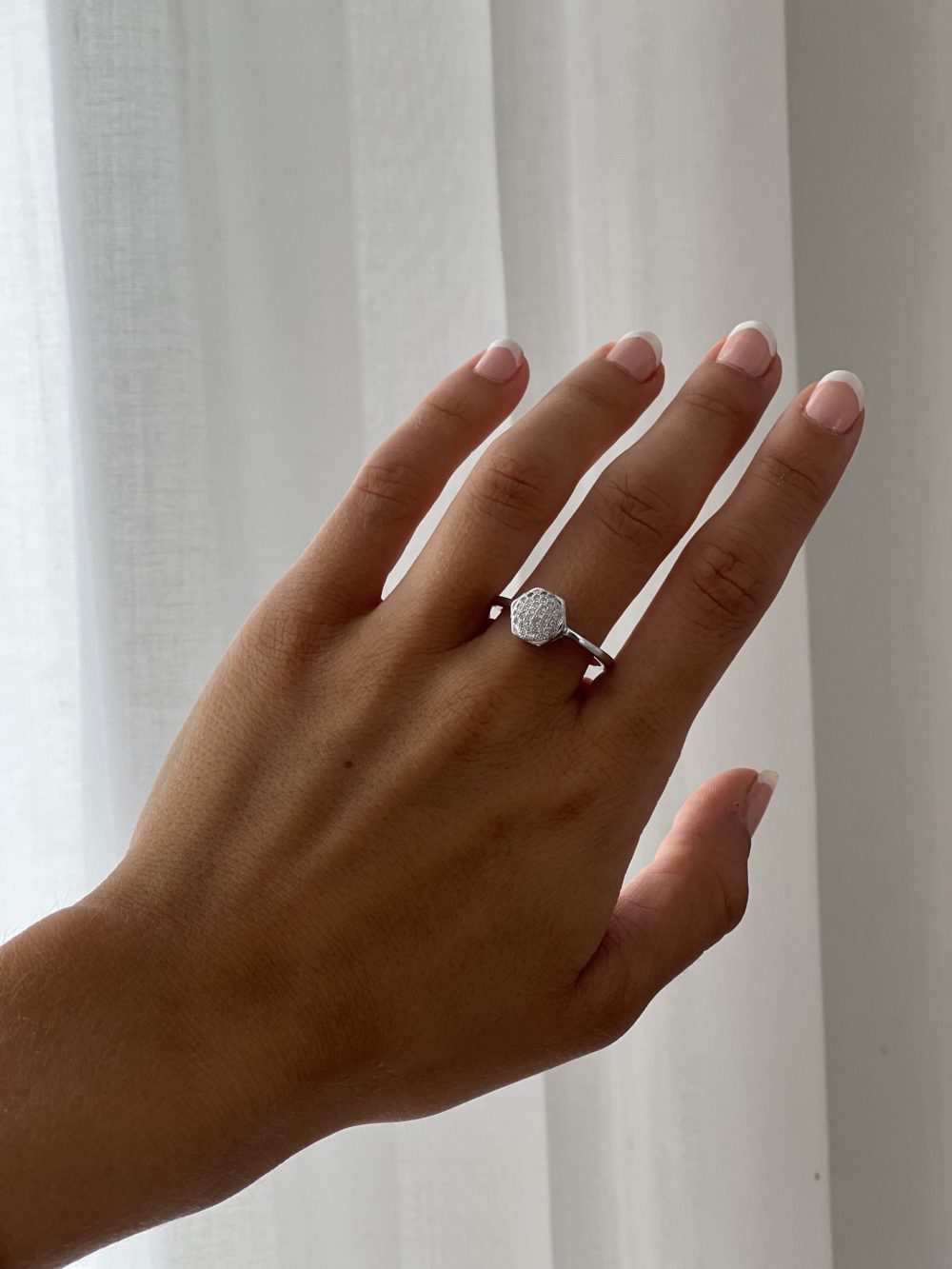 Ring med en 6-kantig Hexagonform upptill fattad med cubic zirkoniastenar.
