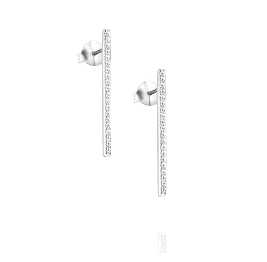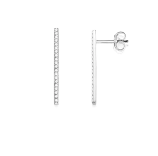 Örhängen i rodierat silver med briljantslipade diamanter på en stav.