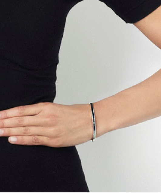 Cuff: 4 x 4 mm. Öppning i stl S: 30 mm, M: 33 mm. armring