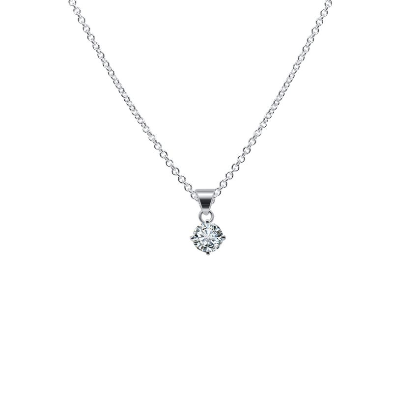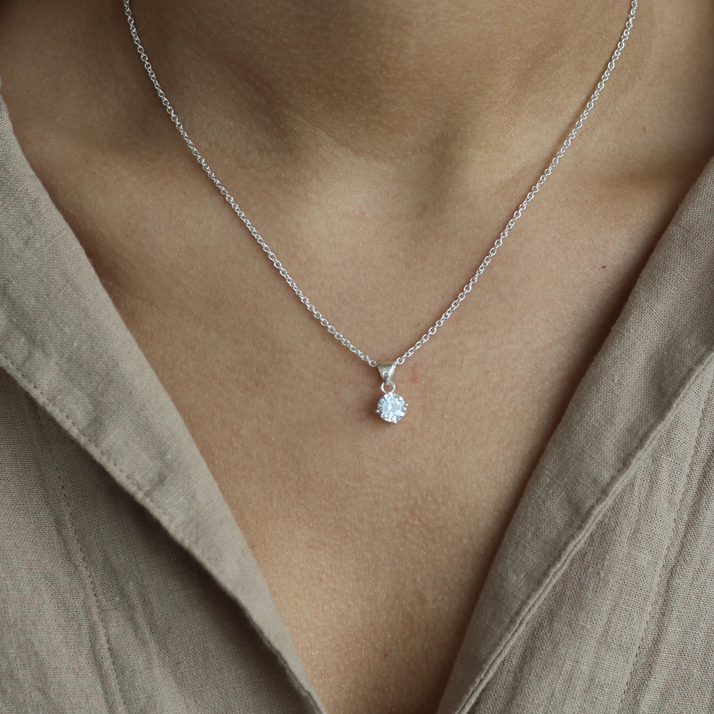 Vit/transparent cubic zirkonia rundslipad, omsluten av äkta silver.