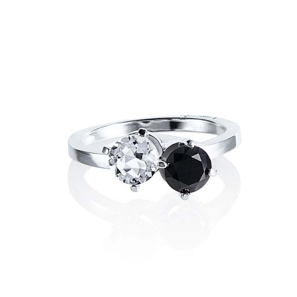 Ring i återvunnet sterlingsilver med en bergskristall och en onyx.