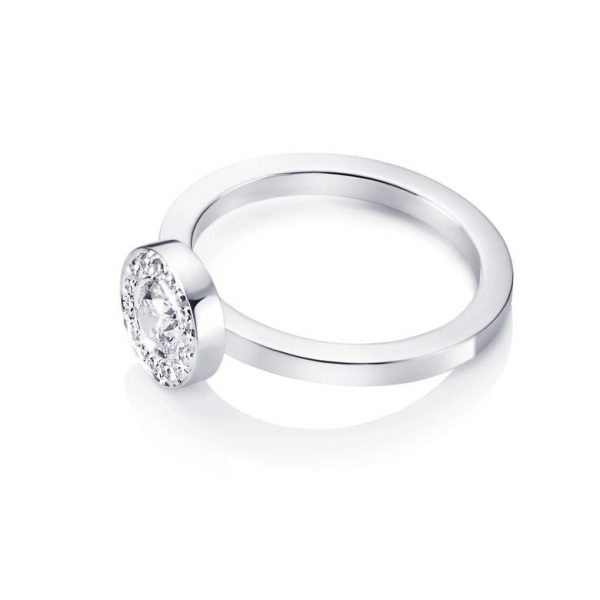 Halo-ring i återvunnet 18k guld eller vitt guld. Denna ring går även att välja med större centersten. Kontakta oss för information och prisförfrågan.