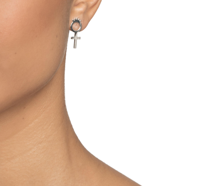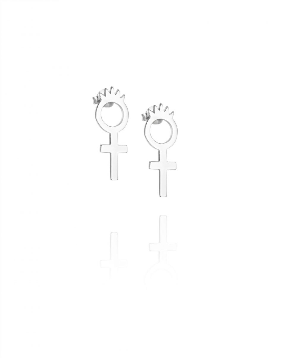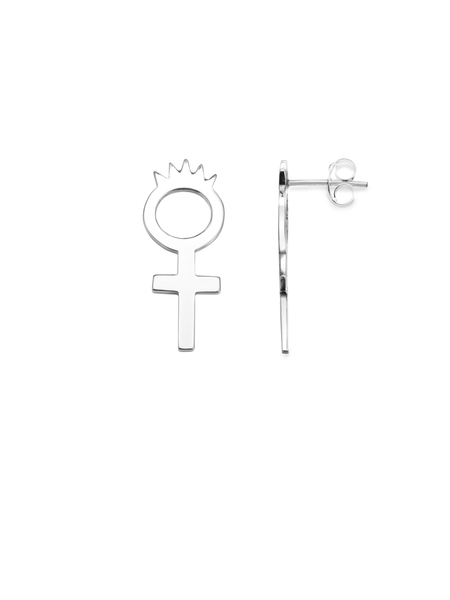 Örhängen i sterling silver formade som kvinnosymbolen dekorerad med en krona.